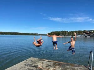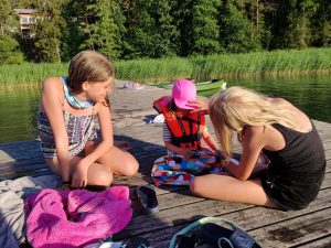 ” Lapsen mielestä olivat parasta saunominen sekä uiminen. Hänen mielestä olisi voinut saada enemmän karkkia sekä enemmän aikaa käyttää kännykkää. Vanhempana olen tyytyväinen, ettei hän saanut pidempää aikaa käyttää kännykkää eikä enemmän karkkia. Olemme olleet erittäin tyytyväisiä. “