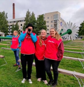 Ohjaaja Sanna ja Emmi sekä vaihtuvia ohjaajia ja vertsuja.